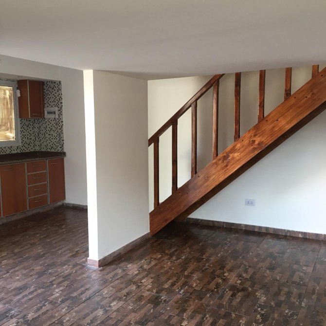 En planta alta se desarrolla un amplio entrepiso en madera laqueada, de 3 x 6 metros, al que se accede mediante una cómoda escalera, ideal como dormitorio principal.