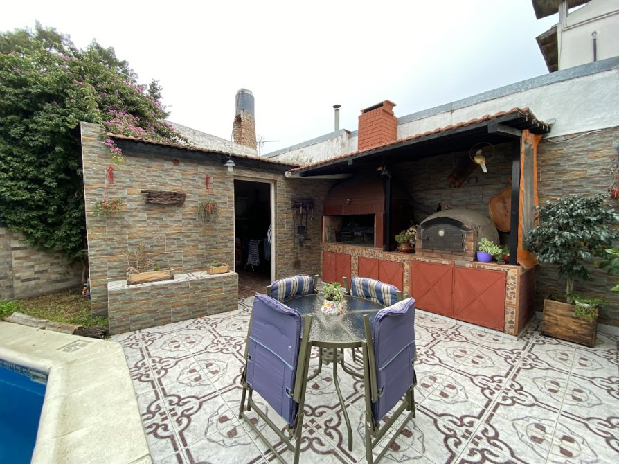PB: porche espacioso con pequeño jardín, acceso a la propiedad por puerta principal donde nos encontramos con un hermoso hall. Baño principal de la vivienda con hidromasaje. Espacioso living comedor con mucha luminosidad, la misma cuenta con una salamandra equipada con gas natural. Cocina completa con sobre y bajo mesada, acceso al contra frente de la propiedad donde nos vamos a encontrar con un patio compuesto por parrilla, horno principal, cuarto de Herramientas (múltiples usos), pileta de material automatizada con luces. Garage cubierto para dos autos.