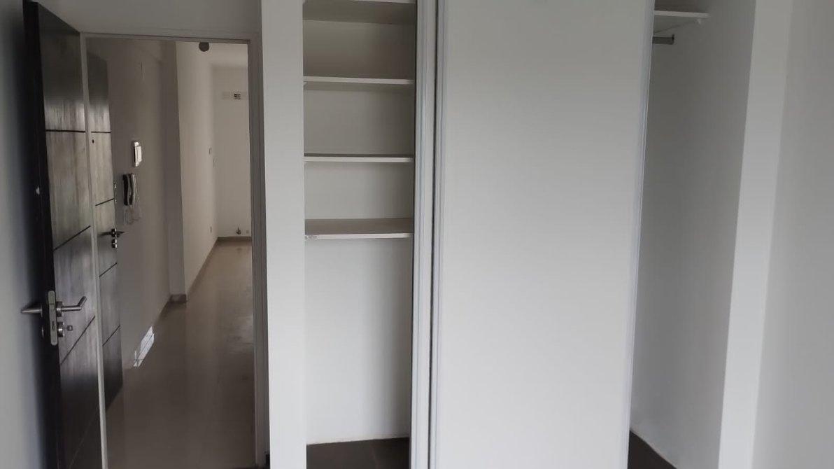 La habitación cuenta con pisos símil madera, placard embutido en melamina con frente, tiro balanceado y salida al balcón, lo que aporta gran ventilación y luz natural.