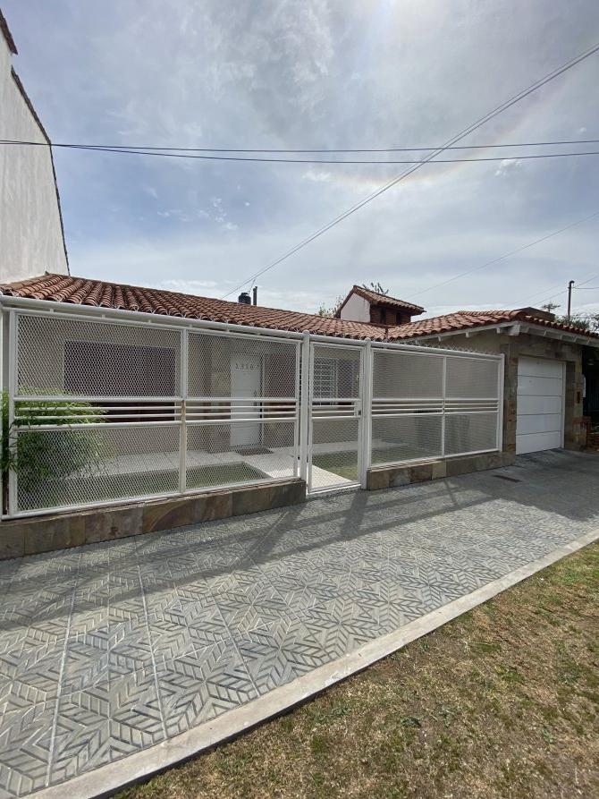 • Jardín frontal con diseño de piedras estilo Mar del Plata y rejas de herrería artística.