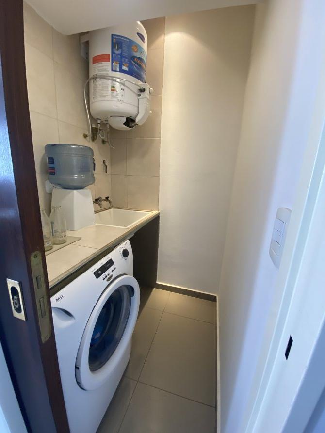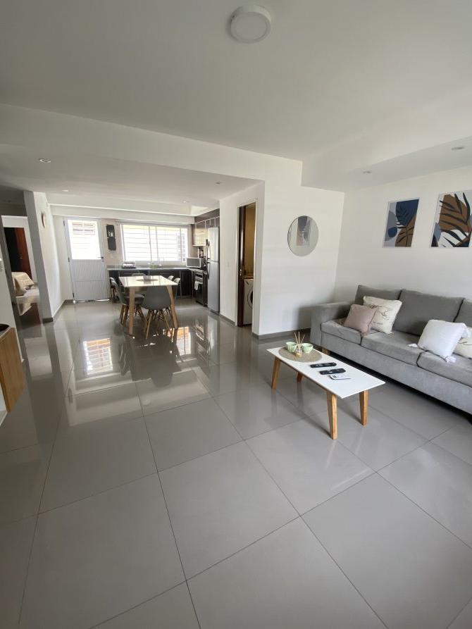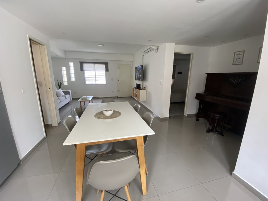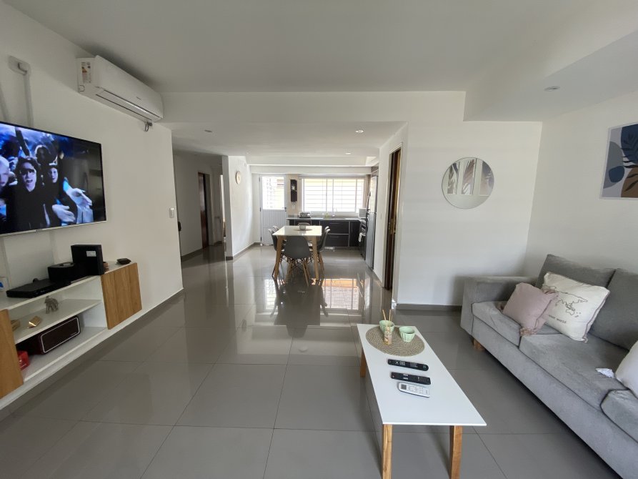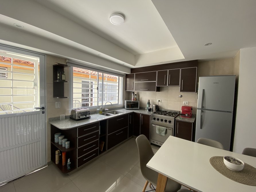 • Cocina-comedor de 4,50 x 10 m, con pisos de porcelanato brillante y diseño moderno.