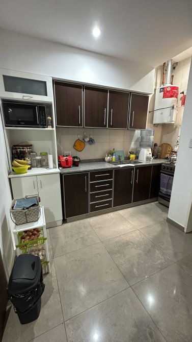 Cuenta con un dormitorio amplio de 3.30 x 3.30 metros, con pisos de cerámica. La cocina está equipada con muebles sobre y bajo mesada, brindando gran capacidad de almacenamiento. El living comedor es muy luminoso, con pisos de porcelanato brillante que aportan un toque moderno y elegante.