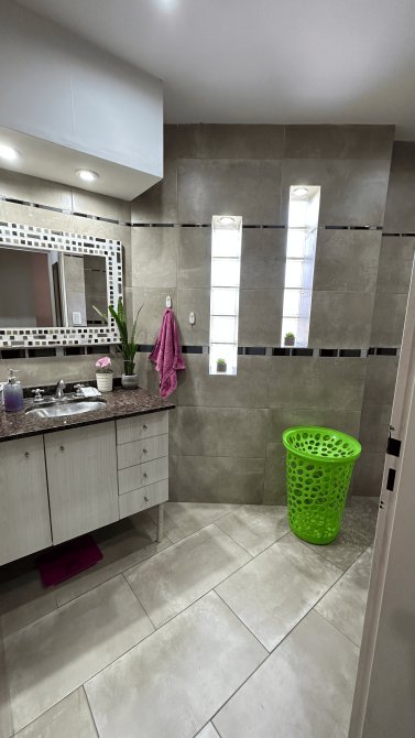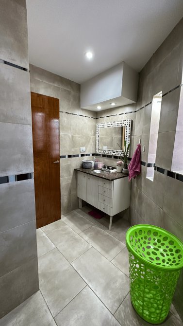 El baño, ubicado en ochava, es muy espacioso y cuenta con un box de ducha completo. Además, dispone de un pequeño lavadero cubierto y un garage cubierto de 7.3 metros, ideal para mayor comodidad.