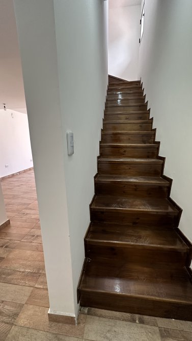 En planta baja, cuenta con una cocina, un amplio living comedor, un pequeño lavadero, y un toilette cómodo con doble monocomando. En planta alta, se encuentran dos dormitorios, un baño principal, y escaleras en madera laqueada que aportan un toque de elegancia.