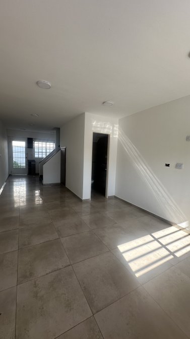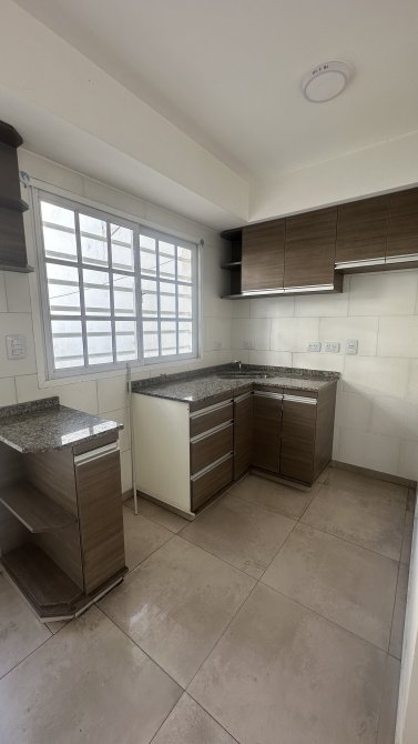 En la planta baja, el dúplex cuenta con un amplio y luminoso living comedor, ideal para disfrutar con familia y amigos. Además, dispone de un práctico toilette y una cocina moderna, equipada con sobre y bajo mesada, con excelente iluminación y una hermosa vista al jardín. Está adaptada para la instalación de cocina eléctrica y aires acondicionados.