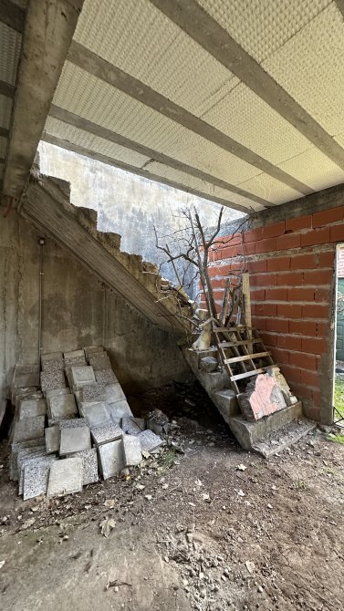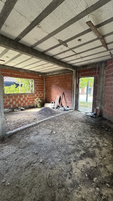• En la esquina, estructura de 6,25 x 8,63 metros, construida con ladrillo hueco, techada con losa y escalera de concreto. La construcción está preparada para continuar en planta alta.