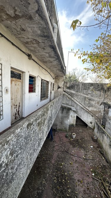 El inmueble cuenta con una construcción principal, un gran parque, y un complejo de cinco viviendas ubicadas al fondo, en estado a refaccionar. El estado general es regular, ideal para realizar mejoras o planificar un desarrollo integral.