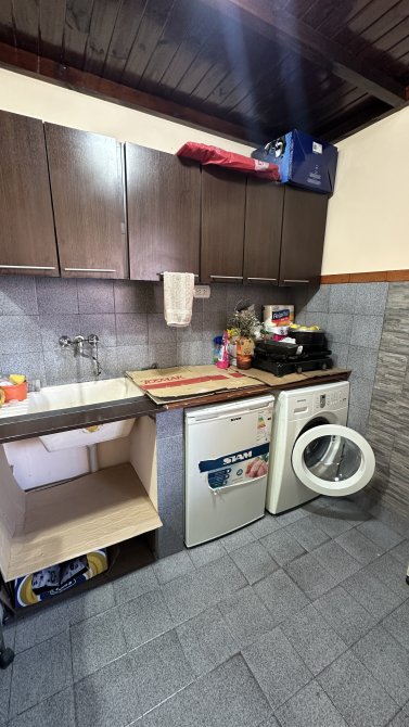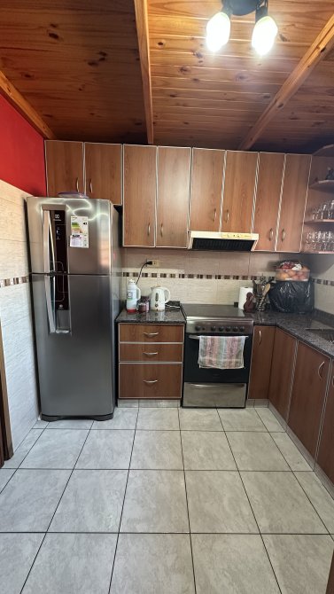 • Cocina integrada, equipada con muebles bajo y sobre mesada.