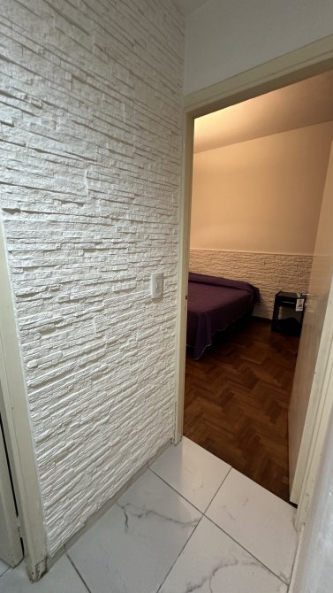 Cuenta con dos amplios dormitorios con pisos de parquet y placares empotrados, baño completo de generosas dimensiones y un luminoso living comedor con cocina integrada, con pisos en porcelanato y paredes en yeso.